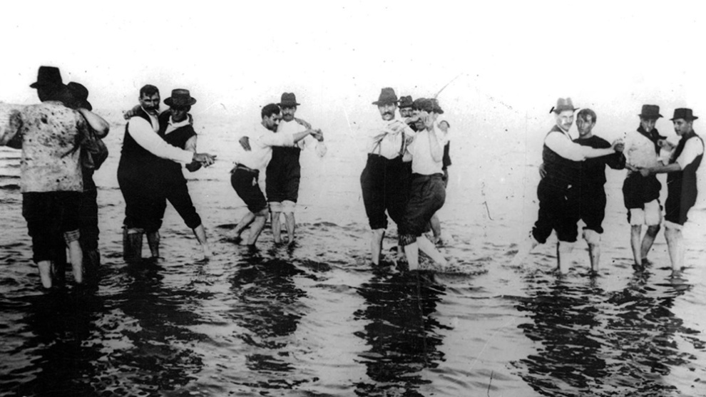 A pesar del mutuo recelo, los dos grupos de desarraigados compartían una misma condición, la obrera, y una misma casa, los conventillos. A la espera de un futuro mejor que no siempre llegaría, los trabajadores se amontonaban en las insalubres viviendas colectivas de los arrabales, urbanizaciones hechas al tuntún que suponían un negocio lucrativo para los propietarios. En el patio común disputaban el turno para usar la única llave de agua que había en el vecindario. La mezcla en un mismo espacio al aire libre de italianos (tanos), gallegos (yoyegas), africanos y locales (los compadritos) fue el caldo de cultivo del tango, una música popular mestiza y al tiempo cien por cien rioplatense. En los barrios pobres de Montevideo y Buenos Aires, en los que la mayoría de la población era masculina, los negros bailaban el candombe. Como recochineo espontáneo, los compadritos imitaron los movimientos de los negros —los cortes, las quebradas— sobre la milonga de sus antiguos, los gauchos. Luego surgió una danza nueva.