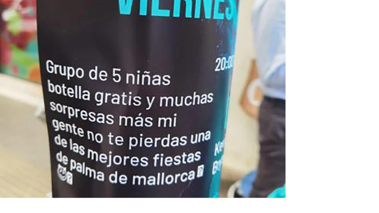 La fiesta de una discoteca de Palma de Mallorca que se promocionaba con el eslogan de "un grupo de cinco niñas, botella gratis y muchas sorpresas más" fue cancelada por el Ayuntamiento.