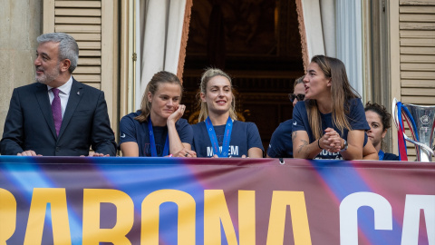 Durante la celebración del domingo, las futbolistas visitaron el Palau de la Generalitat, donde les esperaba el president, Pere Aragonès, y el consistorio, donde fueron recibidas por Collboni, antes de festejar su tetracampeonato con la afición en la plaza Sant Jaume de Barcelona.