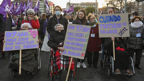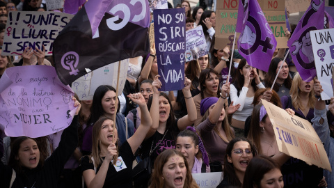 Miles de mujeres salen a las calles en distintas ciudades españolas para reivindicar sus derechos.