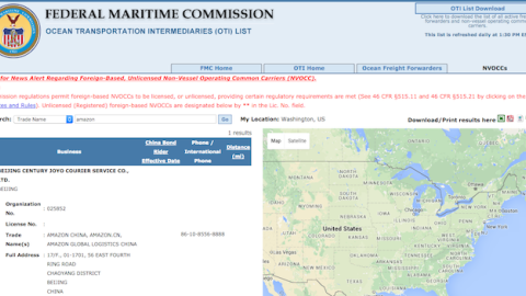 El registro puede comprobarse en la página web de intermediarios de transporte marítimo de la Comisión Federal Marítima de EEUU, en donde aparece la compañía Beijing Century Joyo Courier Service Co. con los nombres comerciales de Amazon China, Amazon.CN y Amazon Global Logistics China. Esto no quiere decir que automáticamente la multinacional pase a ser transportista marítimo, podría incluso llevarle aún unos años aún, pero el primer paso ya está dado.