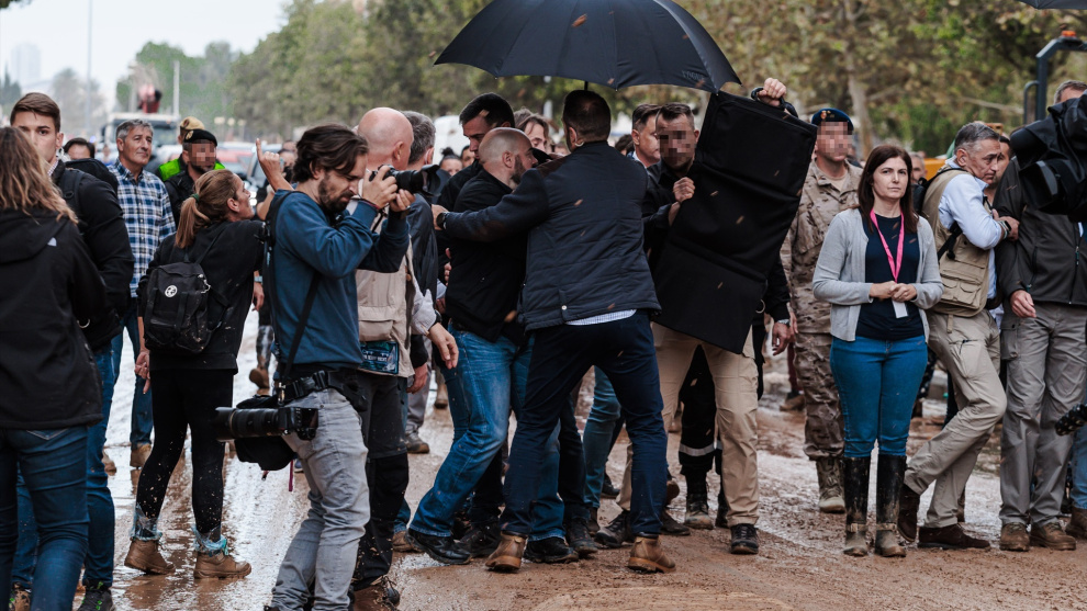 Definiría como curioso, si soy cortés con los adjetivos y no empiezo a cagarme en Dios ya desde el primer párrafo, cómo en las últimas horas, con medio extrarradio de Valencia sepultado bajo aguas negra y el otro medio pidiendo frente a la improvisada morgue de la Feria de la Ciudad ver a sus muertos, el ojo mediático se ha trasladado desde lo esencial de este desastre, es decir, desde los cadáveres aún hinchados y las flores que no se pondrán y las fotos a color restregadas por el suelo, a una especie de tribuna del Santo Oficio de la Compol desde la que juzgar si gente que lo ha perdido absolutamente todo hizo bien el otro día, este domingo, al tirar barro y gritar que se fueran a sus putas casas – ellos que sí tienen – a Mazón, Pedro Sánchez y los Reyes de España.