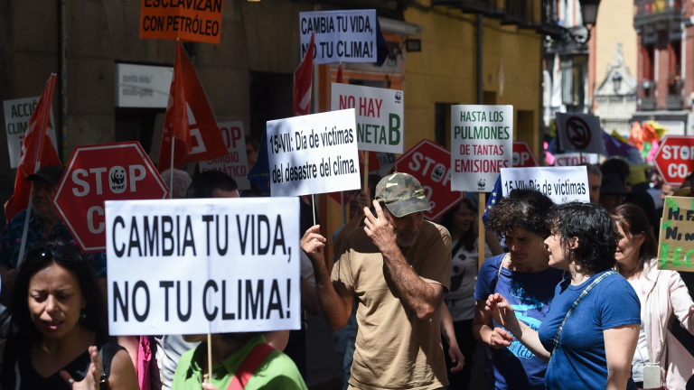Varias personas durante una manifestación en defensa de la justicia climática, en Madrid.