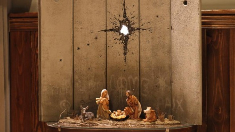Sin embargo, la última travesura de Banksy (La cicatriz de Belén, donde ha representado el tradicional portal navideño con un trozo del muro de Cisjordania atravesado por un balazo que hace las veces de estrella) deja a la altura del betún la enésima payasada de Cattelan, el plátano pegado a una pared con un trozo de esparadrapo. Más aun cuando el nacimiento de Banksy se ubica en el mismo hotel de su propiedad con vistas al muro israelí que ha dejado la zona convertida en uno de los peores guetos de la historia reciente. No es difícil observar que, más allá de su tosco simbolismo y su denuncia elemental, la obra de Banksy refleja el auténtico espíritu de estas fiestas, tal y como debió padecerlo en el origen de nuestra era aquella familia de refugiados perseguidos por un poder hosco y ciego. Sí, es todo muy evidente, pero hay una caricatura de Mingote en donde una señorona comentaba a la salida de una exposición de El Roto que prefería el arte abstracto, porque al menos no se entiende nada.