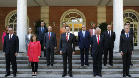 Excepto en el momento escaleras Moncloa de este viernes para hacerse la foto del nuevo gobierno tras la incorporación de la sustituta de Cañete, andan Rajoy y sus chicos en estos días de campaña con una visibilidad más bien de perfil bajo. Vamos, que están todos escondidos debajo de la mesa y buscando la mejor manera de escaquearse y pasar lo más desapercibidos posible hasta que votemos el 25.