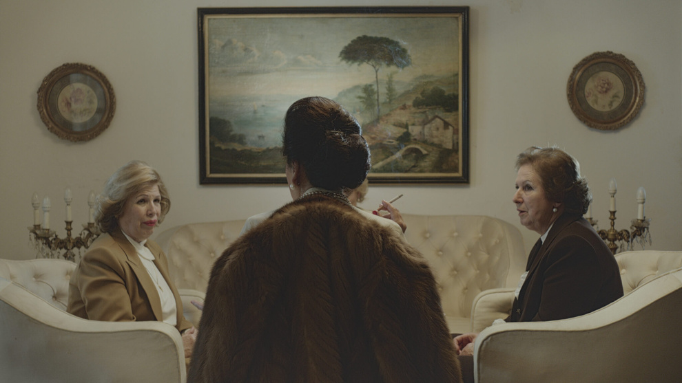 Y, entonces, aparece esa primera escena en que dos mujeres hacen el tonto a la orilla de un lago. No sabemos aún que detrás de esas risas hay una tragedia y una liberación: una señora que vuelve al pueblo y a su soledad, otra que está atrapada en su matrimonio soporífero, alguna más que se graba para no olvidar. El misterio es el ingrediente esencial de la película de Rodríguez y lo que nos va a guiar por esos caminos mágicos y plásticamente decadentistas. El montaje encadena imágenes salidas de los sueños, la fe, ese anhelo por retroceder el reloj y volver a ser niñas por una operación fantasmagórica. Algunos de mis momentazos preferidos: la merienda orgía lésbica con ese temazo "Madre yo quiero un novio aceitunero", la señora que habla del cura peruano o boliviano, "da igual, de esa raza", y el lecho conyugal como mausoleo de cruces y lámparas que cortocircuitan, "dime a qué sabe el techo".