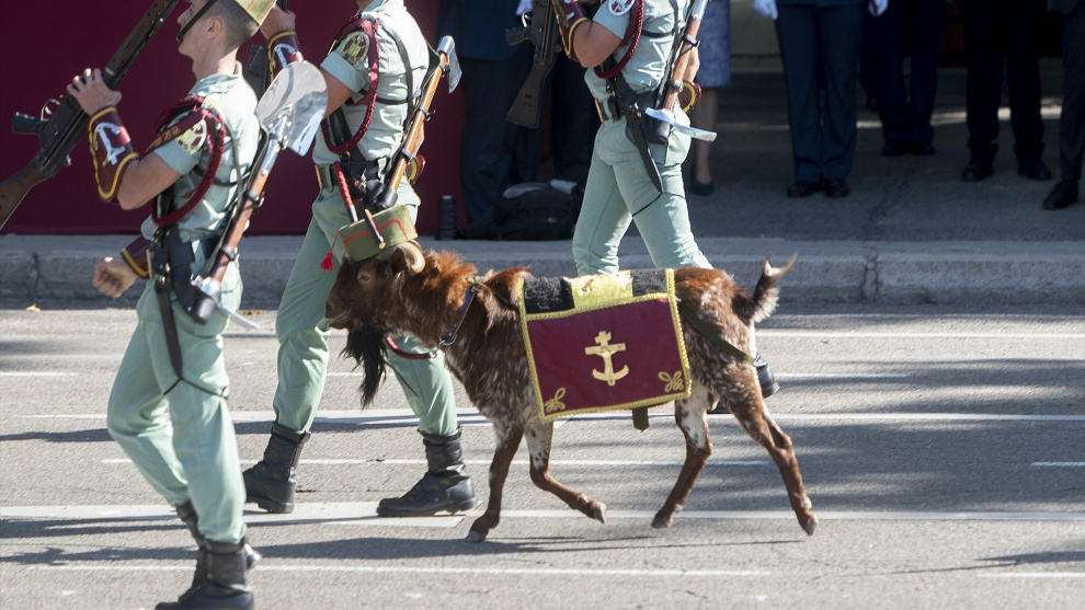 La repetición es la base del entrenamiento militar, también del entrenamiento deportivo, del religioso y del espiritual; repetir una y otra vez movimientos, oraciones y mantras hasta que la mente se queda en blanco y uno no es nada más que un discípulo a la espera de la revelación, un soldado dispuesto a entrar en combate. De ahí que en el desfile de las Fuerzas Armadas del 12 de octubre no sólo se repiten cada año los mismos regimientos, los mismos camiones, los mismos saltos en paracaídas y las mismas maniobras aeronáuticas, sino también los mismos aplausos, las mismas banderas y los mismos abucheos al presidente socialista de turno. Esta última es una tradición casi tan augusta como la de aplaudir a la cabra de la Legión, aunque bastante más ruidosa: entre el presidente y la cabra, buena parte del público muestra sus preferencias.