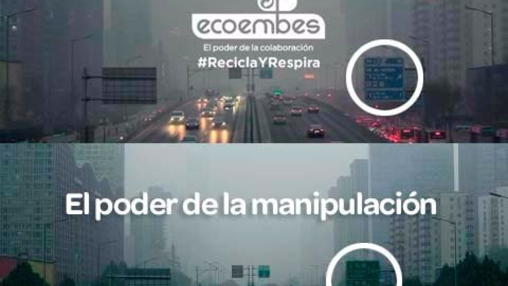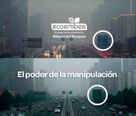 Campañas como Recicla y Respira, para la que la empresa ha cogido una congestionada avenida de Pekín, ha difuminado los árboles de los laterales en grisáceas nubes de contaminación y ha cambiado el color y los textos de los letreros para que el lugar parezca una calle de una ciudad española.