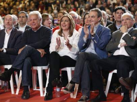 Nada parecía correr peligro hasta que la aparición de Podemos generó serios temblores de piernas en los cenáculos políticos y económicos. Para colmo de males, Pedro Sánchez les salió rana y hubo que organizar un golpe de estado a cara descubierta. Así, tras ayudar al Partido Popular a recuperar el gobierno y ya sin pudor, cuando el defenestrado optó por plantar cara, se decidió organizar una intimidante manifestación de poderío con la que arropar la candidatura de Díaz a la secretaria general socialista, para que a nadie le quepa duda sobre qué camino es el “correcto” cuando llegue el momento de votar en las primarias y en el congreso.