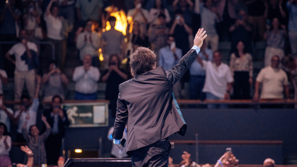 El presidente de Argentina, Javier Milei, interviene durante la última jornada del Madrid Economic Forum, en el Palacio de Vistalegre, a 8 de junio de 2025.Europa Press