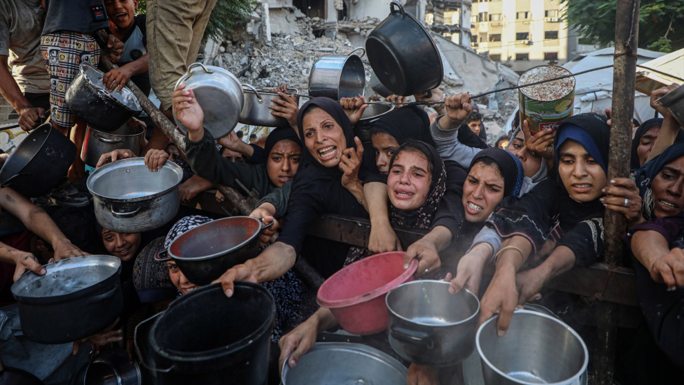 Alrededor de los camiones se agolpan miles de personas. Una baraúnda de muertos de hambre, porque llevan meses utilizando el hambre como arma de guerra. Que nunca fue guerra, sino exterminio. La hambruna, que es peor que el fósforo blanco. El Zyklon B mata rápido, el hambre y el fósforo lentamente. Es lo que quieren, la ley del talión, la venganza más inhumana y deleznable de la historia. Los hombres reclaman su pan y darían la vida por conseguir unas migajas. Ya no les importa morir. Quizás seguir vivos sea su mayor remordimiento: ¿Por qué no me llevaste con ellos? Seguir vivos es un tormento, un suplicio, cuando han exterminado a todos los tuyos. 17.000 niños, ante el silencio cómplice y abominable del mundo, entre los que están tus hijos. ¿Para qué vivir ya? Entonces suenan nuevos disparos. No puedes taparte los oídos porque ya has enganchado un saquito de trigo. Suenan más disparos. Nadie corre. Lo único que te importa es no perder tu botín y no tropezar con los cadáveres: un día 16, otros 25, otros 50, otros 75. Todos los días un montón de asesinados en el reparto de la ayuda humanitaria. Una mentira, pues la ayuda no es ayuda, sino un cebo, un engaño, al que acuden como las ratas, para matarlos.
