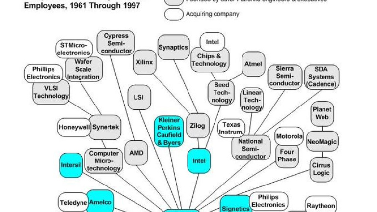 En 1968 se hizo una traza del linaje de empresas sucesoras de Fairchild, del que resultaron 15 empresas instaladas en Silicon Valley, dedicadas a la producción de semiconductores. En la actualidad, son más de 100 las empresas que pueden rastrearse hasta Fairchild y valen más que el PIB de la India (800.000 millones de euros). Este linaje se puede ver en “The Trillion Dollar Startup”, una exposición situada en el vestíbulo del Computer History Museum. Un mural representa a la empresa como si fuera las raíces y el tronco de un gigantesco árbol, cargado de una cosecha de empresas que abarcan seis generaciones de Silicon Valley, desde los semiconductores hasta las redes sociales.