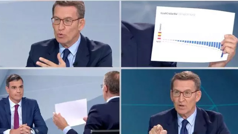 La periodista Silvia Intxaurrondo le echó en cara el cargamento de paparruchas con que ensució el cara a cara con el presidente, sin caer en la cuenta de que Feijóo ha dado un paso más allá en el complejo mecanismo de los debates políticos, inaugurando la era de la posmentira. Por algo la crítica siempre va un paso detrás de la literatura. Fue un cara a cara, sí, pero parecía un culo a culo. En Murcia Feijóo aprovechó el lamentable resbalón de Sánchez diciendo que el sanchismo y Vox son aliados. Tampoco es tan difícil de creer, una vez puesta la fe en lo que sea. El realismo mágico gallego ha llegado a tal extremo que, antes de que acabe la campaña, una víctima de ETA podría levantarse de entre los muertos y decir: “Que te vote Txapote”.