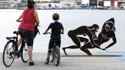 La cosa es la que sigue. Resulta que han instalado una exposición del alicantino Antonio Miró en la Marina de Valencia. Reproduce figuras humanas en posturas eróticas a la manera de las representaciones de la Grecia clásica y similares.