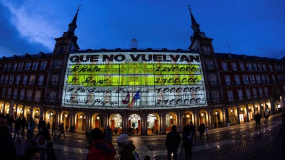 El sábado, en la Plaza Mayor de Madrid, tuvo lugar un lamentable espectáculo de maltrato animal en que se sustituyó la antigua tradición de arrojar viva una cabra de un campanario por la picota de un partido político que lleva arrastrándose por el fango desde Atapuerca. Se expusieron al aire, con luces y todo, las vergüenzas del PP, el turbio carrusel de nombres y cifras correspondiente a los llamados "papeles de Bárcenas", quizá la obra de ficción más controvertida de los últimos años, puesto que todo el mundo sabe que los Rato, Cospedal, Acebes y Arenas de los papeles son personajes novelescos que nada tienen que ver con sus correspondientes actores en la realidad, por mucho que la justicia, el sentido común y la realidad digan exactamente lo contrario.