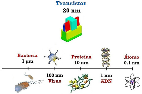 Comparando tamaños con la biología. Algunos dispositivos actuales son tan pequeños como una proteína
