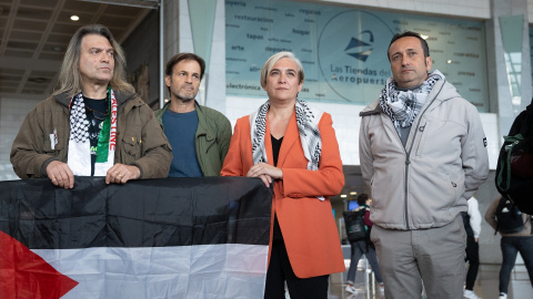 Jaume Asens y Ada Colau junto con otros miembros de la delegación catalana que se suma a la Flotilla de la Libertad. David Zorrakino / Europa Press