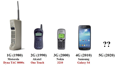 Las distintas redes de comunicaciones inalámbricas, con el año aproximado de su introducción, así como las marcas de móviles y algunos de sus terminales más célebres.