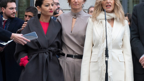 En ella se ve desfilando a Yolanda Díaz de blanco, muy moderna, a Mónica García de rojo, muy brillante, y a Sira Rego de negro y oro, muy formal. Se las ve juntas, guapas y empoderadas como sabiendo a dónde van y orgullosas de estar haciéndolo.