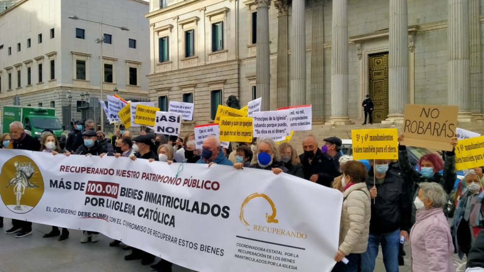 El gobierno presentó el año pasado su informe sobre los bienes inmatriculados por la filial española de la multinacional privada "Iglesia Católica SA" durante el periodo de vigencia de la Reforma Hipotecaria de Aznar (1998 a 2015). Se contabilizaban 34.961 bienes inmatriculados solo durante ese periodo, aunque la plataforma Recuperando reclama que se establezca un listado de todos los bienes inmatriculados desde 1978.