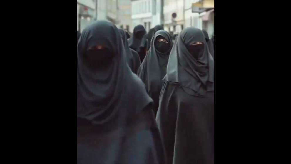 El vídeo, si es que se le puede llamar vídeo a semejante engendro, estaba hecho con multitud de imágenes fruto de una inteligencia artificial generativa que representaba bastamente, con hombres de ocho dedos y mujeres con la cara a la altura de los senos, a familias arias horrorizadas ante una legión de creyentes musulmanas y chavales magrebíes – o a esa conclusión llego si interpreto desde sus sesgos la morralla publicada .