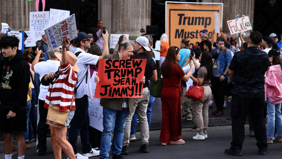 Recordaba esta escena de V cuándo el pasado jueves me enteré del despido fulminante del presentador de la televisión norteamericana Jimmy Kimmel por, supuestamente, hacer unos chistes sobre la reacción del movimiento MAGA y de Donald Trump al asesinato de Charlie Kirk y sugerir que, quizás, sólo quizás, podrían estar utilizándolo para imponer su agenda. Ese despido fulminante se explica porque la cadena que distribuye el programa de Kimmel necesita del gobierno para autorizar sus fusiones comerciales. Es decir, la política de Trump determina quién sale por la tele y quién no.