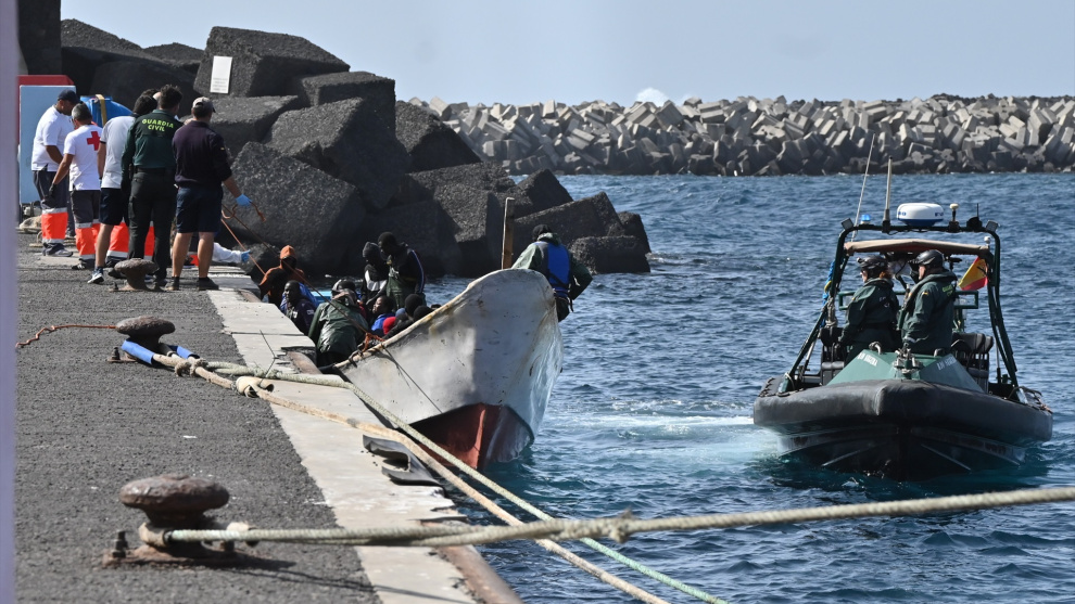 Un cayuco llega al puerto de La Restinga, a 26 de enero de 2024, en El Hierro, Santa Cruz de Tenerife, Tenerife, Canarias (España).-Europa Press Canarias