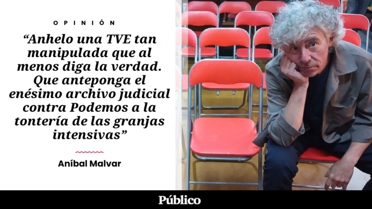 Yo anhelo una TVE tan manipulada que al menos diga la verdad. Que anteponga ese golpe al lawfare que significa el enésimo archivo judicial contra Podemos a la tontería de las granjas intensivas, que todo el mundo sabe que son chungas, anti rentables, contraecológicas y antipatrióticas. Mi patria son las vacas y los cerdos, y los paisajes, con los que quiero convivir. No sus estúpidas banderas y sus pulseritas. Y sus patrióticos dineros suizos, por supuesto.