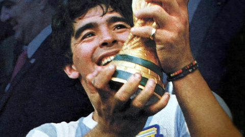 Sobre el césped tenía algo de héroe griego en la melena fosca y en el gesto bravío, una prefiguración de la escultura rota en la que iba a desembocar después, un trozo del Partenón caído por los suelos. Al lado de Shilton, que le sacaba veinte centímetros, y de los robustos defensas ingleses, Maradona parecía un niño. A lo mejor ése era su secreto, que siguió jugando toda la vida con la alegría, los ritmos y misterios de la infancia. No parecía un delantero de fútbol, para qué vamos a engañarnos. Corpulento, bajito, cuellicorto, más bien gordo, su anatomía tiraba más a la niñez y a la redondez de la pelota que llevaba imantada a los tobillos y que le obedecía como si fuese una extensión más de su cuerpo, otra mano, otra cabeza, otra rodilla. Había que verlo calentando antes del partido, jugueteando con el balón y bajándolo al toque, sin el menor esfuerzo, mientras el público cantaba enloquecido: una escena que Sorrentino homenajeó en Juventud, sin estadio, sin balón y sin público, con un Diego enfermo, hinchado, hidropésico, decadente, lanzando una pelota de tenis a la estratosfera.