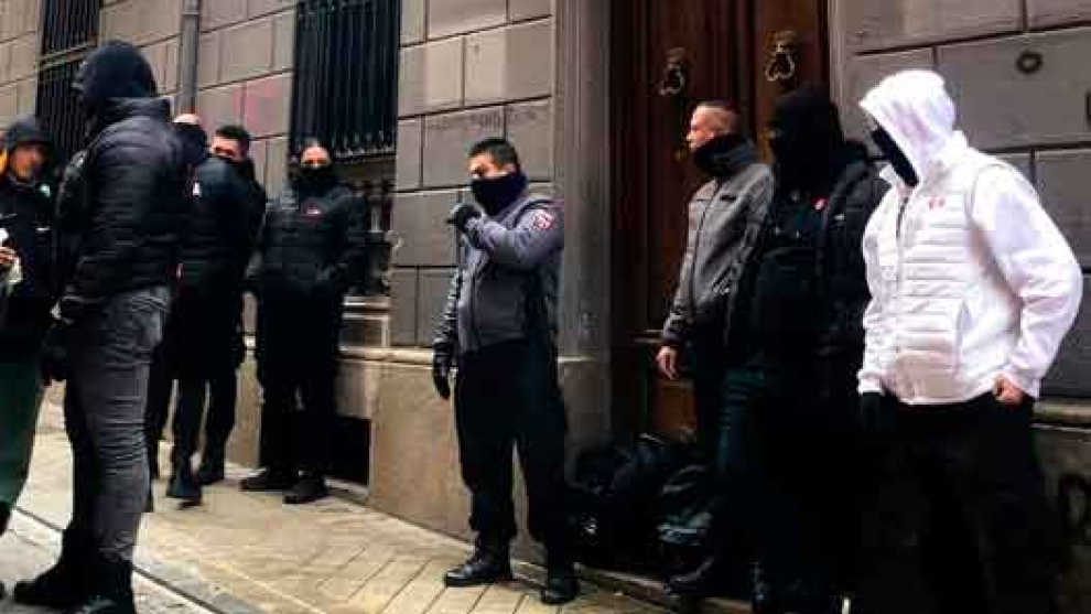 Mediadores antiokupa con pasamontañas