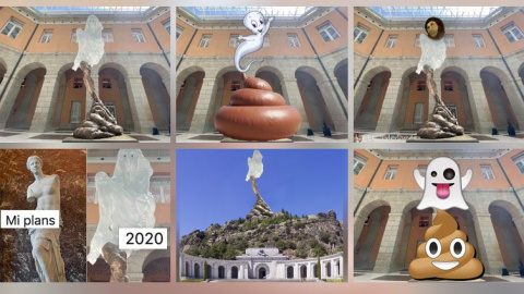 Puede parecer extraño que Ochoa haya rematado su escultura en apenas tres meses desde que se inició la pandemia, pero en sus declaraciones asegura que lleva preparándola desde años atrás, lo cual hace pensar que sí, que, aparte de disponer de poderes paranormales, necesitaba urgentemente un laxante. En 1961 Piero Manzoni puso a la venta noventa latas que supuestamente contienen, según avisa la etiqueta, "Merda d'artista", pero hasta la fecha ninguno de sus propietarios se ha atrevido a abrir alguna y comprobar si hablaba en serio. Víctor Ochoa ha ido un paso más lejos y Ayuso se ha apresurado a fotografiarse junto al mamotreto sin sospechar que Ochoa a lo mejor la había tomado de modelo: un fantasmón en el momento de echar una cagada gorda como para llenar cien cacerolas. A la presidenta de la Comunidad de Madrid le encanta darse el pisto en estos homenajes funerarios y hace poco inauguró un pebetero en la calle de Alcalá dedicado a las víctimas del Covid-19 que se quedó sin gas al día siguiente de encenderse. “Vuestra llama nunca se apagará en nuestro corazón” se lee en la placa, con lo que más simbólico no puede ser el asunto. Lástima que las víctimas ya no puedan defenderse.