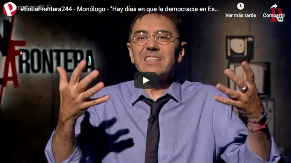 Me llena de vergüenza que en mi país, España, el PP montara una policía política para inventar pruebas falsas contra Podemos y que esas pruebas falsas se publicaran no solamente en la cloaca de Inda, sino también en La sexta y en Telecinco y en Antena 3 y en Cuatro y en la Ser y en la COPE y en Onda Cero y en el País y en El mundo y en el ABC. En todos los medios las mismas noticias falsas, siempre con la intención de debilitar a Podemos porque había elecciones o era posible un acuerdo de gobierno con el PSOE. Me llena de vergüenza que Inda, que ha colaborado en la difusión de esas pruebas falsas no esté juzgado y en la cárcel como su amigo Villerejo y me llena de vergüenza verle en los platós de La sexta o de Telecinco cacareando sus mentiras infinitas con la impunidad del protegido. Porque es un falso periodista que inventa pruebas, lleva al periodismo al vertedero y debilita la democracia.