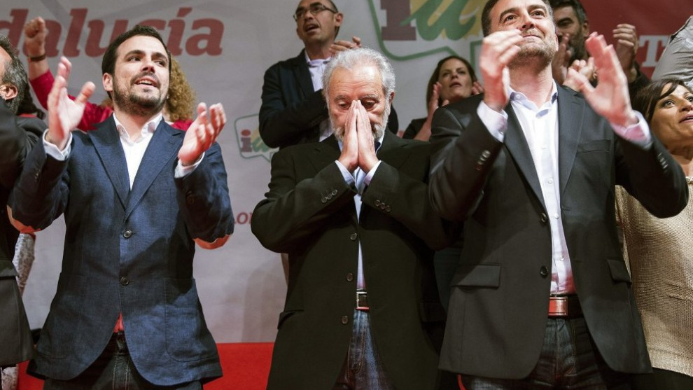 Entonces le presenté así, para quien no le conociera: “Es quizás el Don Quijote más Quijote de nuestra política. Tiene 78 años y, antes de escucharle, conviene recordar quién fue y quién sigue siendo: el líder que, con el lema “programa, programa, programa”, llevó más alto a la izquierda de este país, antes de Podemos, (21 escaños en 1996, contra el todopoderoso Felipe González); el primer y único alcalde de capital de provincia comunista, al que apodaron “el Califa Rojo” cuando consiguió revalidar la alcaldía por mayoría absoluta en 1983; el Coordinador General de Izquierda Unida que dejó la política en 1999 después del tercer infarto; el político que la dejó y volvió a ser maestro de escuela; el jubilado que renunció a la pensión como exdiputado para cobrar la que le quedó por ser lo que es, un maestro; y el hombre que sigue y seguirá comprometido con la movilización social hasta que se le acabe el tiempo”.