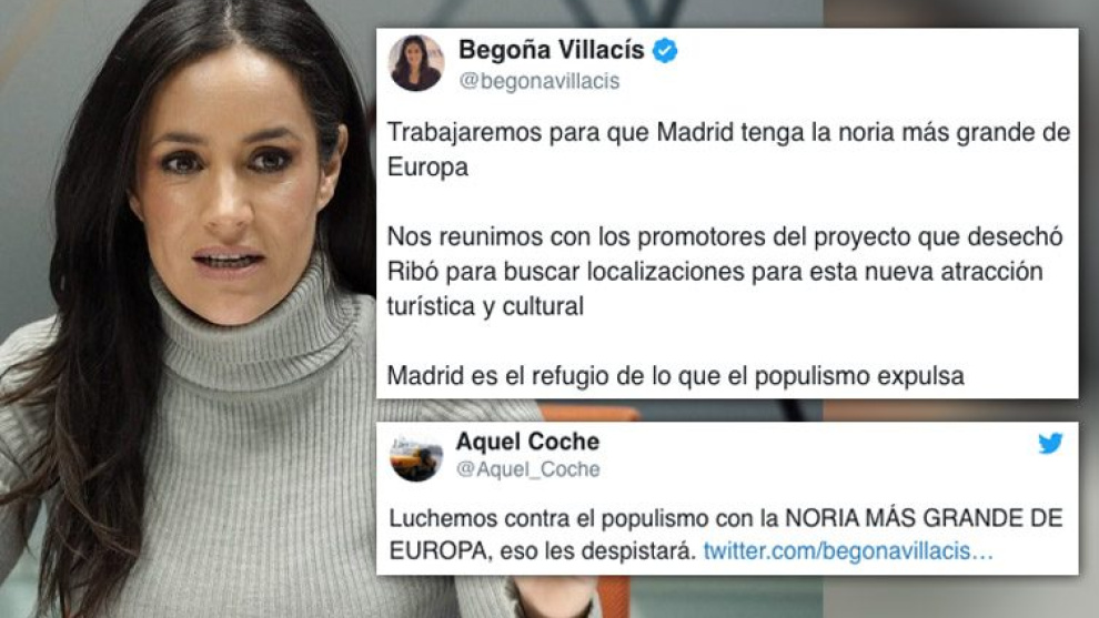 Pasando de Almeida a Ayuso, la nariz de payaso ha recaído esta semana en Begoña Villacís, quien no ha tenido el menor problema en impulsar su lucha personal contra el populismo gracias al proyecto de importación de una noria gigante de la que se siente muy orgullosa. Es justo lo que le hacía falta a Madrid: no más salas de conciertos ni más universidades ni colegios, ni siquiera un carril bici para despejar un poco la boina de la contaminación, tampoco mejorar los transportes públicos. No, una noria gigante que además ya fue desechada en Valencia porque les olía a chamusquina.