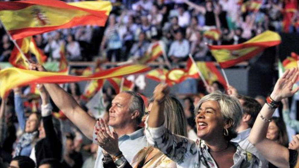 Asistentes al mitin de Vox en Vistalegre. EFE.