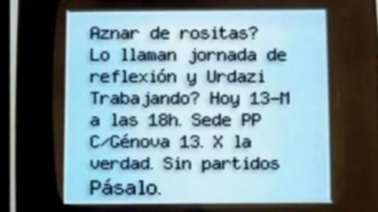 Del Café Comercial nos fuimos al tanatorio sur. Había fallecido la pareja de un compañero y fuimos a darle un abrazo. Aquello, lleno de víctimas, era la estampa de la tristeza. Nos sentíamos marionetas de un teatro siniestro donde unos locos asesinaban, los dirigente mentían y el pueblo que viajaba en cercanías ponía los muertos. Cuando llegamos, nos llamó la atención que todos habíamos empezado a recibir en nuestros teléfonos, rebotado, el Pásalo. En el tanatorio estaba Carlos Cué, el periodista de El País. A él también le había llegado varias veces el mensaje. “¿No vais a hacer nada?” -nos preguntó. Recuerdo que le dije: “Algo estamos haciendo”, aunque era más un deseo que nada que estuviera sostenido con grandes expectativas.