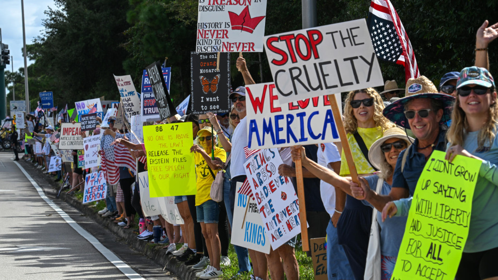 He estado todo tan untado de grisura, de terror y silencios en los últimos meses que, de repente, ver a millones de personas congregadas en las calles de los 50 Estados, en decenas de ciudades, protestando pacíficamente contra lo que consideran un abuso de poder presidencial transmite una esperanza inusitada. Familias con niños, ancianos, jóvenes… portando pancartas que claman por la democracia, exigiendo el respeto a los derechos que garantiza la constitución; regueros de humanidad junta en torno al lema "Sin Rey", referencia directa a la fundación del país como estado federal libre del yugo de la monarquía británica; la ciudadanía unida en torno a unos pilares políticos fundamentales a los que no quieren renunciar: todo ello ha dejado imágenes sobrecogedoras el pasado fin de semana. Lo son porque cada persona que ha asistido a las concentraciones lo ha hecho a sabiendas del peligro que corre en ese clima de reducción de sus garantías legales, pero también porque la presión de esas multitudes guarda el potencial de activar a un partido demócrata que, ya desde antes de la estrepitosa derrota electoral en 2024, ha demostrado una ineptitud generalizada para reorganizarse, revitalizar su liderazgo, y plantar cara a los desmanes republicanos. Al final, las movilizaciones a gran escala quizá sean las que azucen una respuesta democrática institucional a la altura, algo indispensable de cara a los comicios de medio mandato el año que viene.