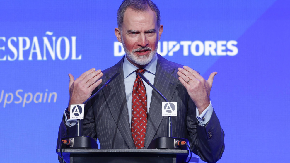 Era la inauguración de la quinta edición del Foro Económico Español, tan español que estaba organizado por el periódico homónimo y llevaba el lema en inglés: Wake up, Spain! La verdad, cuando Ayuso financiaba la Oficina del Español en Madrid, bajo la atenta vigilancia de Toni Cantó, no pasaban estas cosas. Ahora, en cambio, lo mismo te llevan al rey de España a un foro titulado en inglés que bautizan con el nombre de Madring el futuro circuito de Fórmula 1 en la capital, como si fuese a pilotar un mandril.