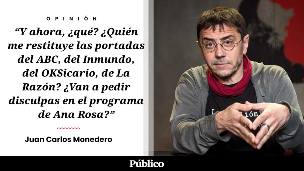 Y ahora, ¿qué? ¿Quién me restituye las portadas del ABC, del Inmundo, del OKSicario, de La Razón? ¿Van a pedir disculpas en el programa de Ana Rosa? ¿Quizá mi amiga Ana Terradillos, que me preguntó en directo “¿Has trincado o no has trincado?, me va a llevar al programa a pedirme perdón?” ¿Y en el de Carlos Herrera? ¿Tal vez Carlos Alsina?