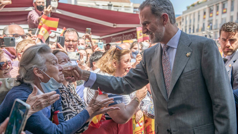 El Rey Felipe VI saluda varias mujeres a su llegada a la Plaza Mayor de Ciudad Real.- Eusebio García del Castillo / Europa Press