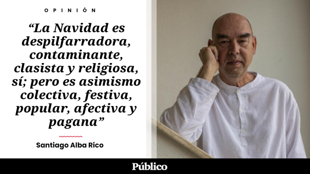 En fin, lo cierto es que nacemos en un mundo que nos precede ya organizado a partir de materiales muy diversos, de manera que a veces, como recordaba hace poco Miguel Alvarez Peralta, más revolucionario que luchar contra ellos (y contra la gente que los comparte) es intentar reciclar esos materiales en favor de un proyecto más liberador que el original mismo. Podemos y debemos inventar tradiciones alternativas (porque las tradiciones nacen y mueren, salen de los suburbios o se fabrican en los palacios), pero podemos también, en tiempos adversos, aprovechar los huecos acogedores de una tradición secular para oponer resistencia a los poderes destituyentes del capitalismo y generar, al mismo tiempo, vínculos transformadores. El cristianismo, mal que nos pese, es nuestra tradición, una tradición compartida por millones de compatriotas y trufada de ideas no pensadas que debemos repensar y de trincheras acogedoras que podemos okupar. La Navidad es despilfarradora, contaminante, clasista y religiosa, sí; pero es asimismo colectiva, festiva, popular, afectiva y pagana.