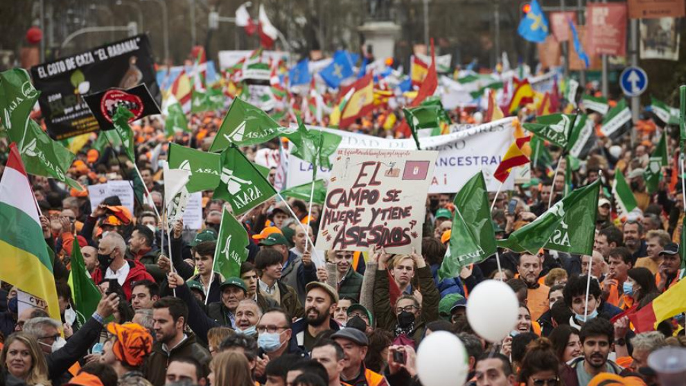 ¿Es comprensible una manifestación a favor del campo donde los señoritos tengan tanta presencia? ¿Cómo se explica una huelga de transportistas, asfixiados en verdad por la subida del gasoil y los escasos ingresos, representada por gente de la patronal que vota a Vox, formación que se ha opuesto a todas las medidas que mejoraban la vida de los trabajadores? ¿Se ha normalizado en España esa imagen de un rico con mucho colesterol del malo manifestándose en una caravana de vehículos contra el gobierno desde su coche conducido por su chófer? ¿Volvemos a imaginarnos escenas, reales o ben trovatas, situadas en el barrio de Salamanca de Madrid donde las muchachas de servicio golpeaban las cacerolas al lado de sus "señoras", indignadas cargadas de collares, o donde señoritos engominados golpeaban las señales de tráfico con palos de golf?