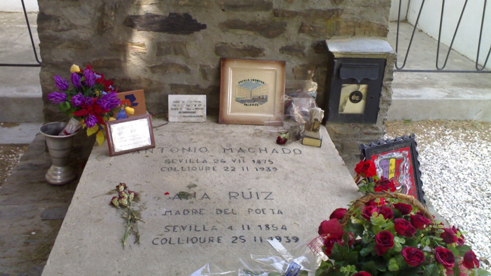 Dos jóvenes visitan la tumba de Antonio Machado en Collioure en silencio y hacia adentro, de una manera austera y consciente. Más jóvenes que nosotras, un par de generaciones más allá. El acto de decidir “Estas vacaciones visitaré la tumba del poeta republicano”. Antes de eso, conocer la República y saber del fascismo, haberse interesado. No como nosotras. A nosotras nos enseñaron la grandeza del poeta, sus campos de Castilla y su patio de Sevilla, a cambio de callar cómo huía hasta Francia sangrando de franquismo, marchando de la muerte y la ignorancia.