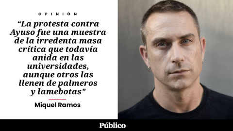 Las protestas de ayer en la Universidad Complutense de Madrid contra la presidenta de la Comunidad, Isabel Díaz Ayuso, quien recibía honores del ente público en un nombramiento no exento de polémica, son un síntoma de esa revuelta necesaria. El acto estaba hecho a medida para ella, para que tanto el reconocimiento como las protestas le sirvieran para presentarse una vez más como reina y como víctima para su cohorte. La protesta no fue únicamente contra su nombramiento, sino que puso sobre la mesa la pauperización y la instrumentalización de los servicios públicos.