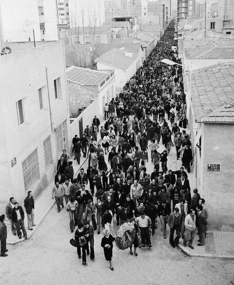 El día anterior, en Elx, diez mil trabajadores se habían sumado a la huelga. Todo el corredor del Vinalopó, núcleo de la industria alicantina del calzado, estaba movilizado. El Sindicato Vertical franquista hacía aguas y nuevos sindicalistas, aun en la ilegalidad, reclamaban participar en la negociación del convenio colectivo del calzado y mejores salarios en un momento de alta inflación. Las exigencias de libertades, de sindicatos obreros y de freno al despido libre acompañaban cada movilización.