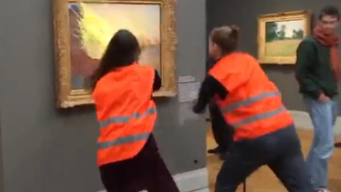 Mi favorito de Monet ni siquiera es ese cuadro de la serie Les Meules (Los pajares), sino La pie (La urraca), pero los activistas contra el cambio climático que han atacado la obra del impresionista francés expuesta en el Museo Barberini de Potsdam, al sur de Berlín, lanzándole "una sustancia viscosa" que resultó ser puré de patata me han indignado tanto como los que hace unos días echaron sopa de tomate sobre Los girasoles de Van Gogh en la National Gallery de Londres.