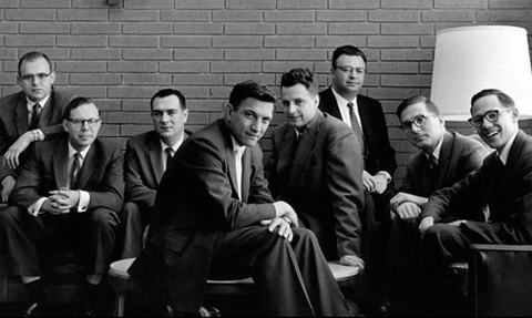 Los “ocho traidores”. De izquierda a derecha: Gordon Moore (uno de los fundadores de Intel), C. Sheldon Roberts, Eugene Kleiner, Robert Noyce (uno de los inventores del circuito integrado), Victor Grinich, Julius Blank, Jean Hoerni y Jay Last (primer director de Fairchild Semiconductors)