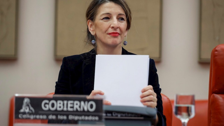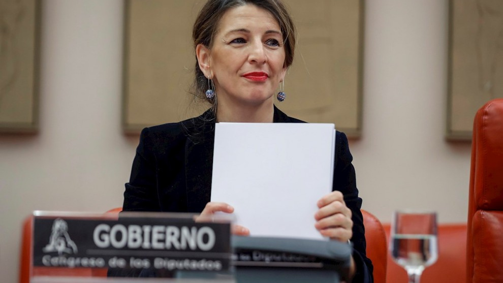 La vicepresidenta Yolanda Díaz durante una comparecencia en el Congreso.- EFE