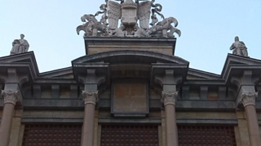 Un escudo franquista preside un edificio cultural en Gijón
