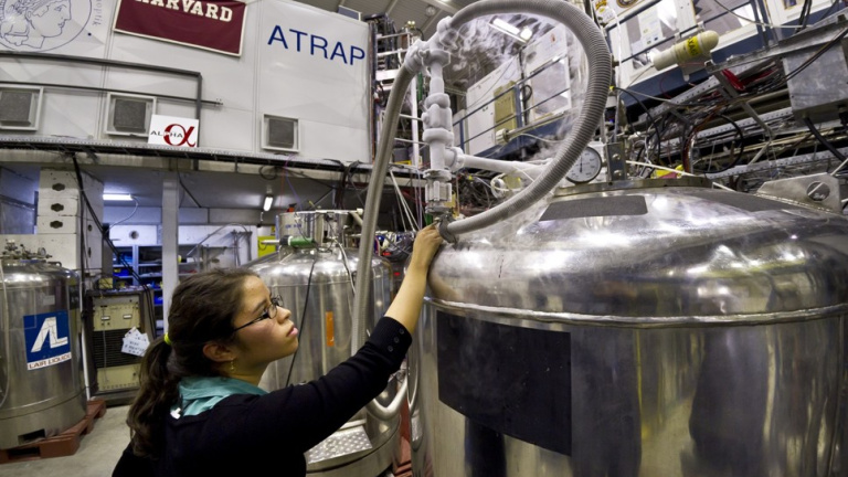 A cada vuelta que dan por dentro del anillo, los intensos campos magnéticos van frenándolos. Cuando su velocidad desciende a una décima parte de la de la luz, se consideran decelerados y un cambio súbito en el campo magnético los saca hacia la línea de eyección, donde ya los tenemos disponibles para hacer cosas con ellos de manera manejable. Por su parte, los positrones (antielectrones) suelen proceder del isótopo radioactivo sodio-22. El experimento ATRAP se encargó de decelerar y acumular estas antipartículas frías para dar el siguiente paso: la creación artificial de antiátomos a escala significativa.